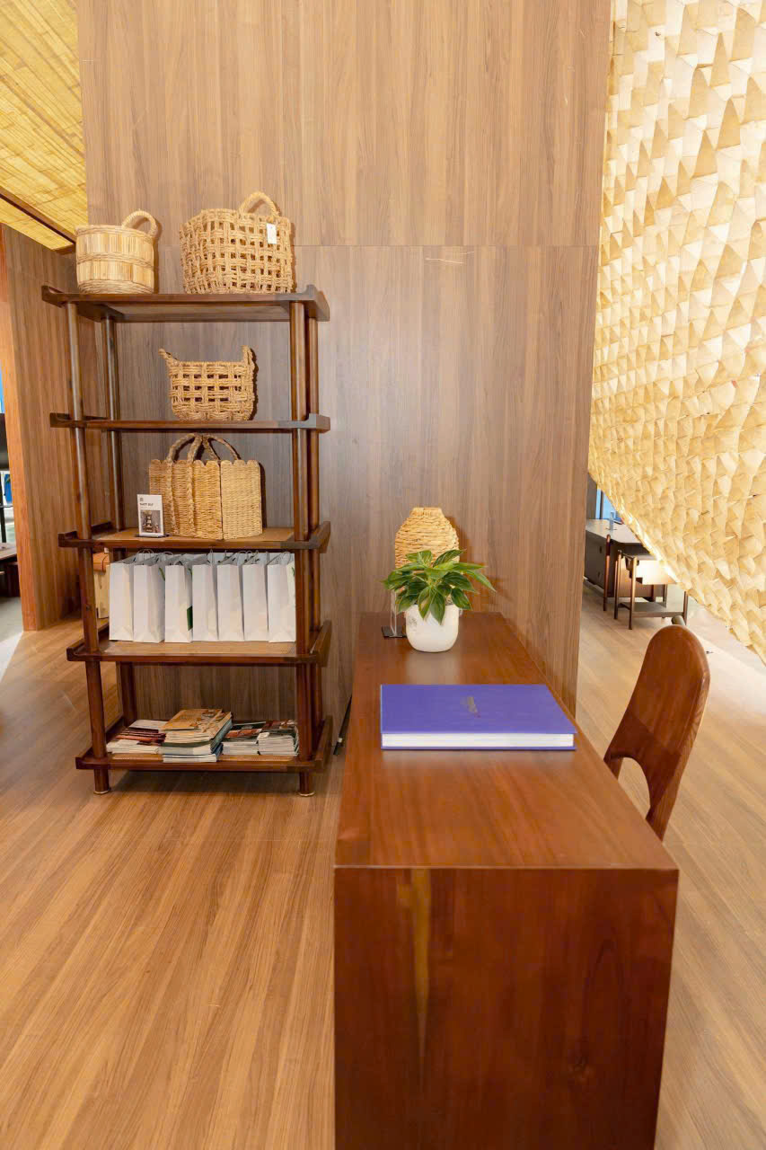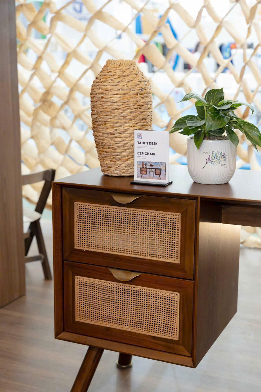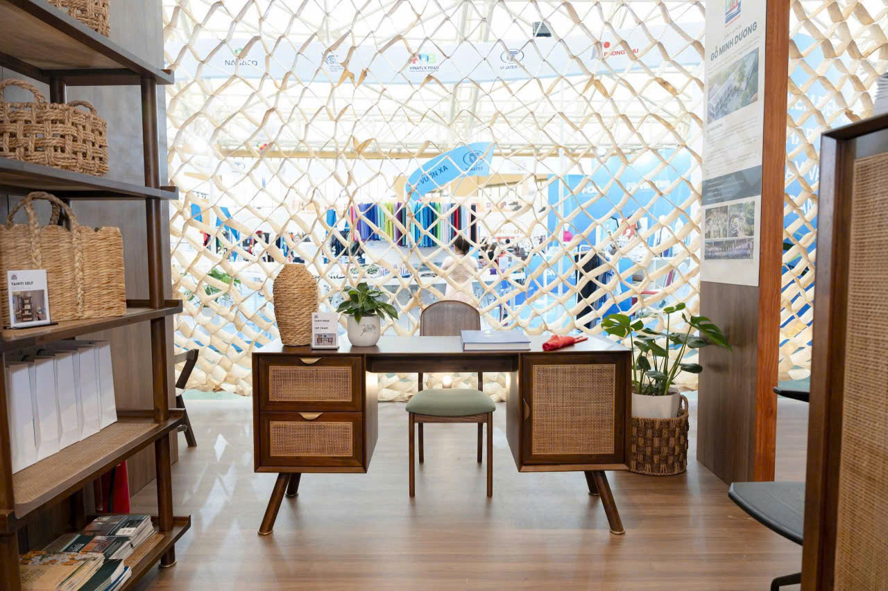 In this pavilion, Minh Duong is showing a group of Home Office products made of local wood Acacia, combined with rattan, beautifully designed and manufactured to present furniture pieces in our daily working environment, versatile yet also very sophisticated.