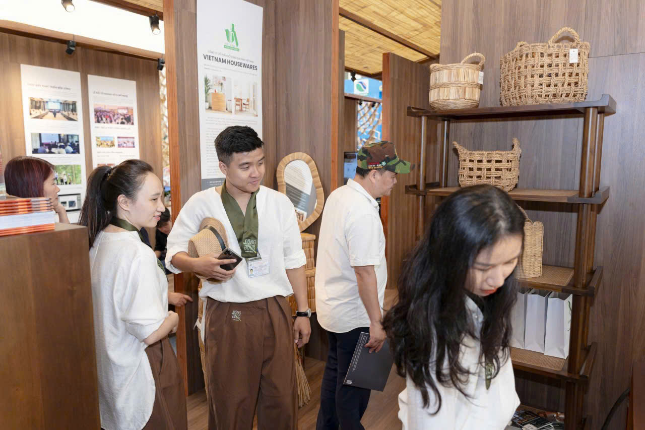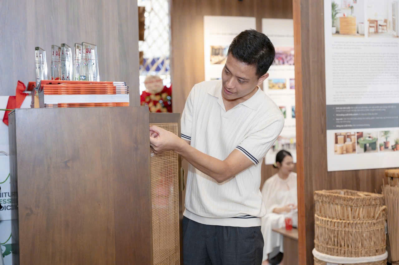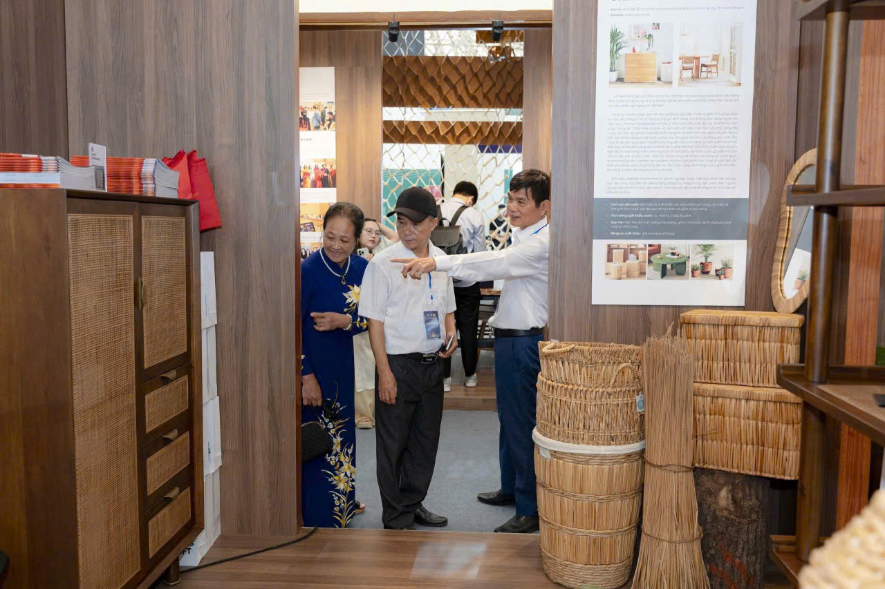 In this pavilion, Minh Duong is showing a group of Home Office products made of local wood Acacia, combined with rattan, beautifully designed and manufactured to present furniture pieces in our daily working environment, versatile yet also very sophisticated.